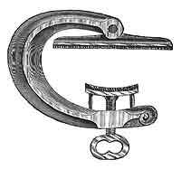 | Dunlop C-Clamp Here the rubber tubing is extended to protect the side of the instrument neck. Marketed by Dunlop. |